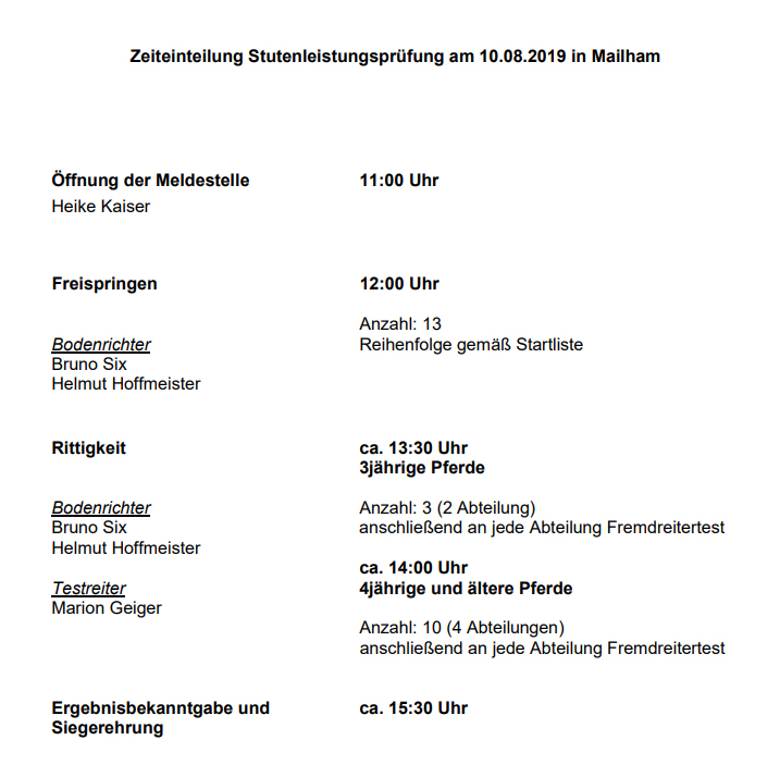 B.: Weiß,Andreas, A 5143 Feldkirchen, Vormoos 12 Gestüt Vormoos